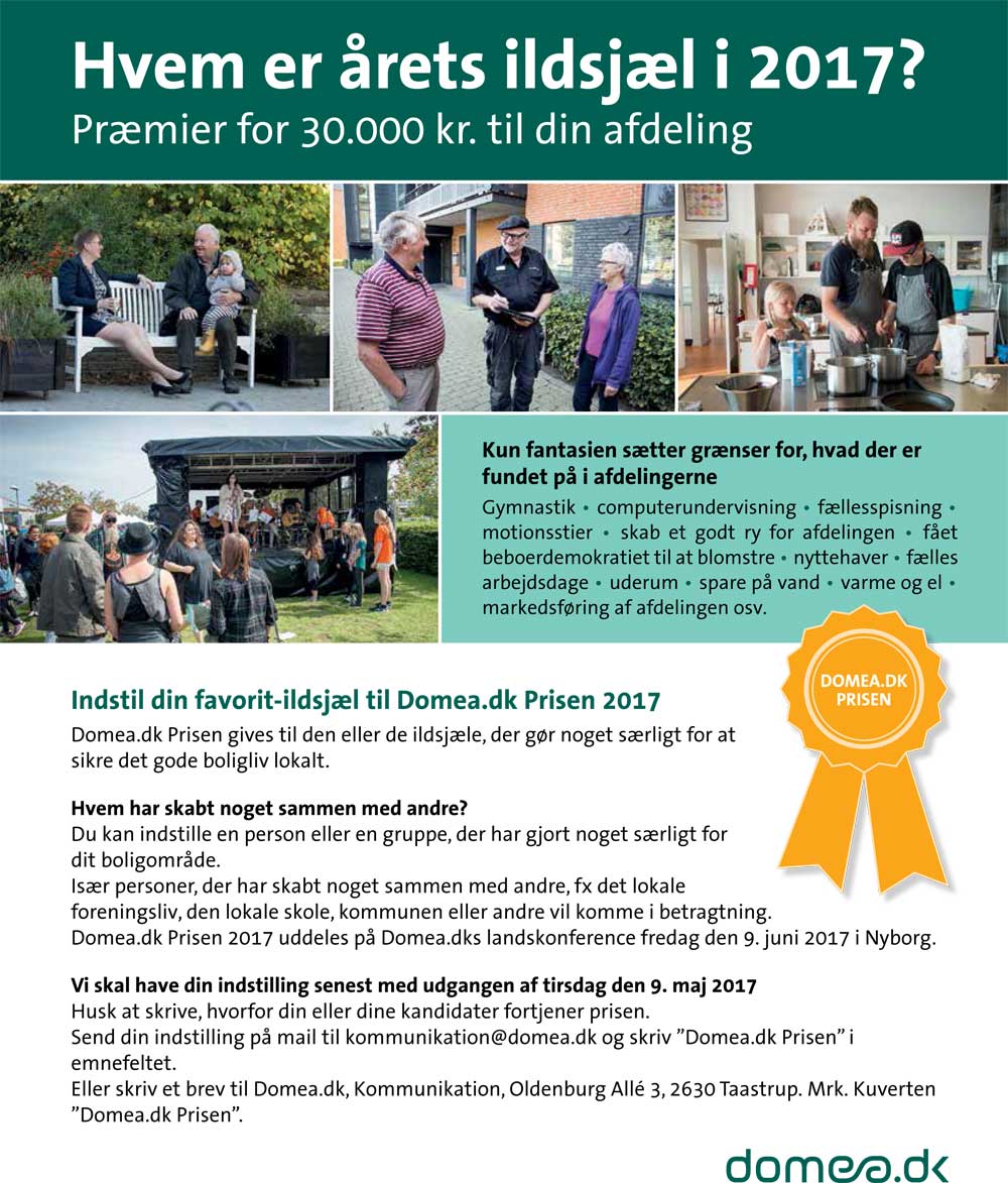 Kender du årets ildsjæl eller ildsjæle? Så er det måske hende, ham eller dem, du skal indstille til Domea.dk Prisen 2017 med præmier for i alt 30.000 kr.