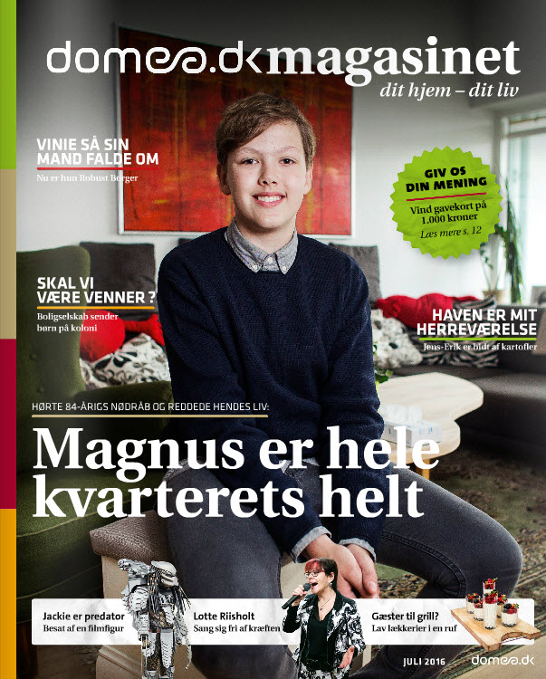 Næste nummer af Domea.dk Magasinet er på gaden d. 14. juli 2016, og her kan du bl.a. læse om Magnus, der hørte naboens nødråb og på den måde reddede hendes liv.