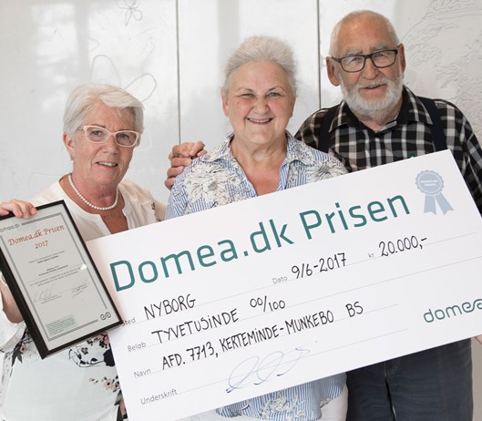 Det var tre overvældede og glade repræsentanter for afdeling 77-13, Vestergade, i Kerteminde-Munkebo Boligselskab, der fredag den 9. Juni 2017 gik på scenen til Domea.dks landskonference i Nyborg for at modtage Domea.dk-prisen og 20.000 kroner.